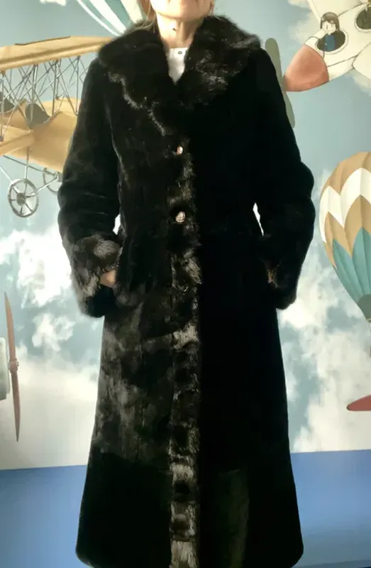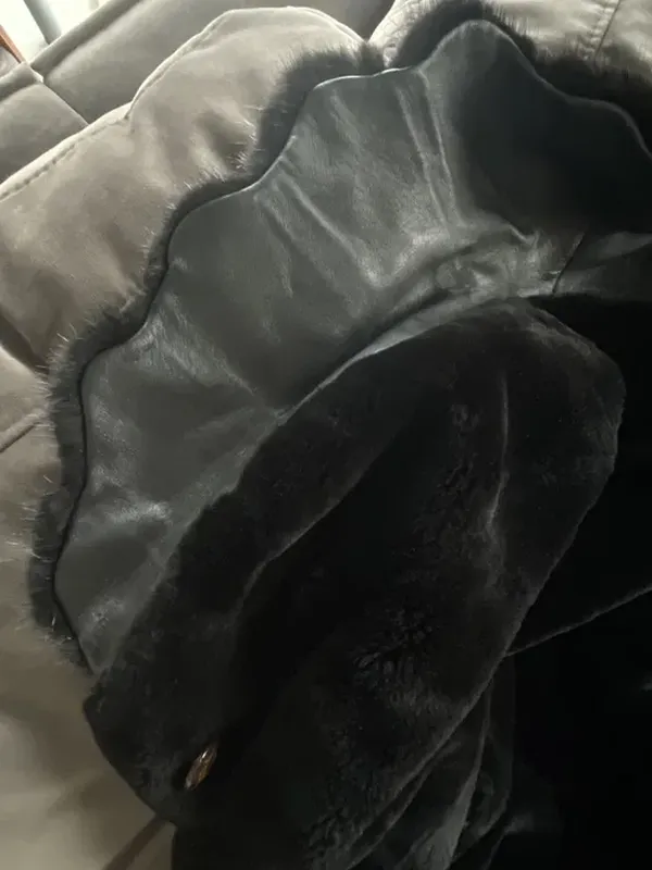 Шубка дуже тепла, мутон з оздобленням норковою та шкіряними вставками під ошатним коміром. Легка водночас.