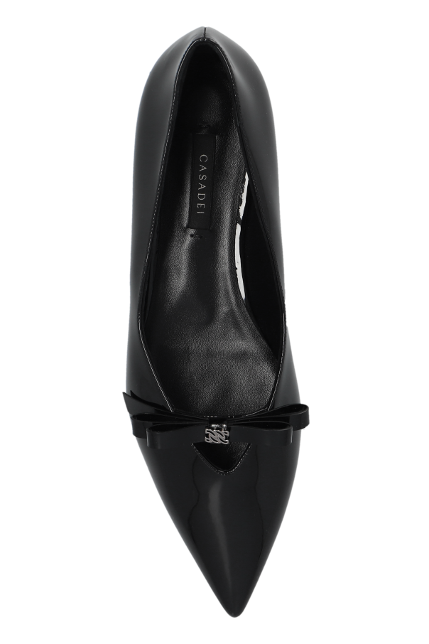 Introducing the Casadei Tiffany Leather Loafers, a paragon of sophistication and refined taste. Crafted with meticulous attention to detail, these black, patent leather shoes exude an air of understated elegance. The sleek, pointed toe silhouette, complemented by a distinctive, possibly lacquered or metallic, buckle-like embellishment, encapsulates classic style while infusing a modern twist. The Tiffany loafers are constructed from premium quality leather throughout - from their gleaming exterior to the plush interior and even the durable sole, ensuring both comfort and longevity. The absence of overt branding enhances their minimalist appeal, making them a versatile addition to any discerning wardrobe. Why purchase the Tiffany Leather Loafers? Elegance and Versatility: The classic design, accentuated by a refined decorative detail, offers unmatched versatility for styling. Premium Quality Materials: High-quality leather used in all layers for a luxurious feel and enduring wear. Exquisite Craftsmanship: Expertly crafted by Casadei, a testament to Italian artisanry and design excellence. Subtle Sophistication: The sleek, pointed toe and glossy finish add a touch of sophistication to any ensemble, without overwhelming it.