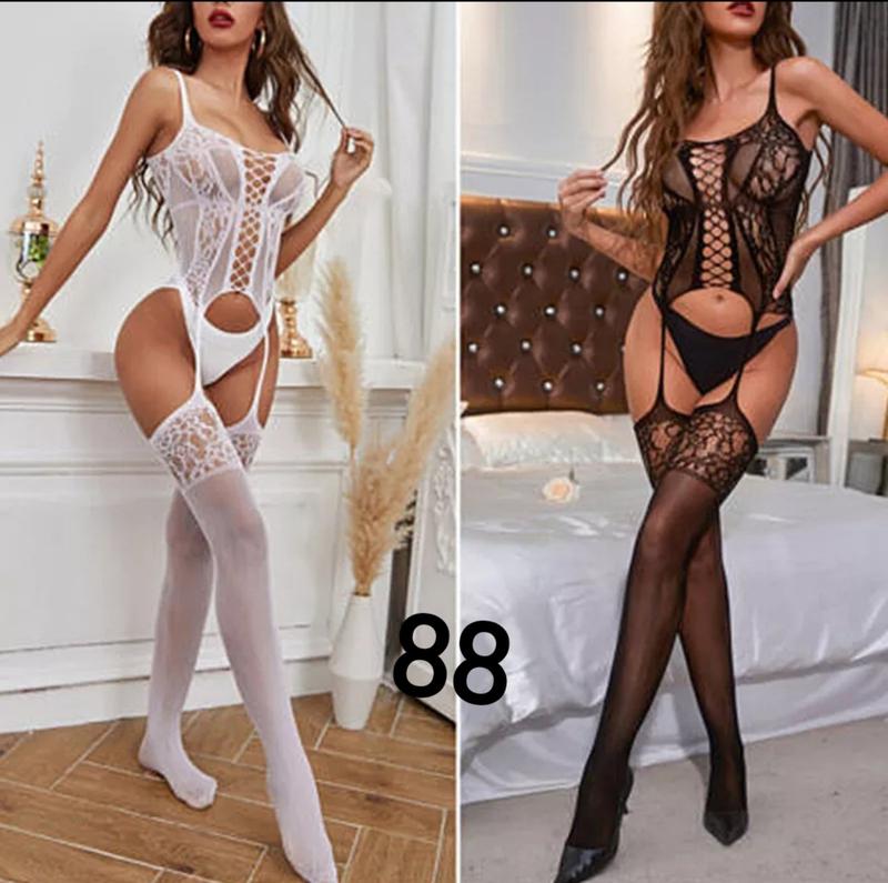 Прозорий корсет сітка з візерунком переходе в сексуальні панчохи облягає і підкреслює фігуру.
