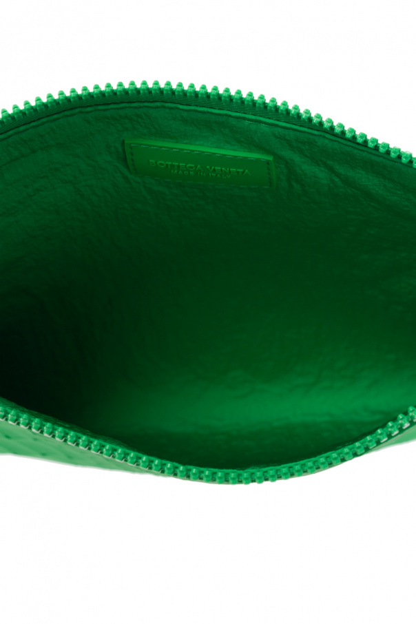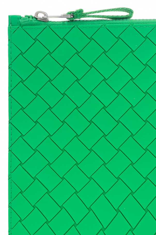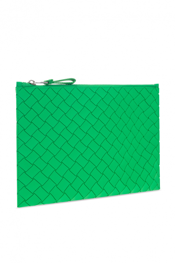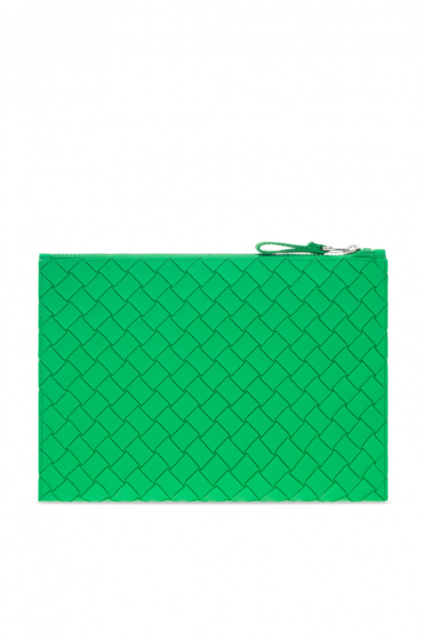 Green clutch from Bottega Veneta. Featuring a pattern inspired by the iconic ‘Intrecciato’ weave, this item is complete with a zip fastening and one internal compartment.
