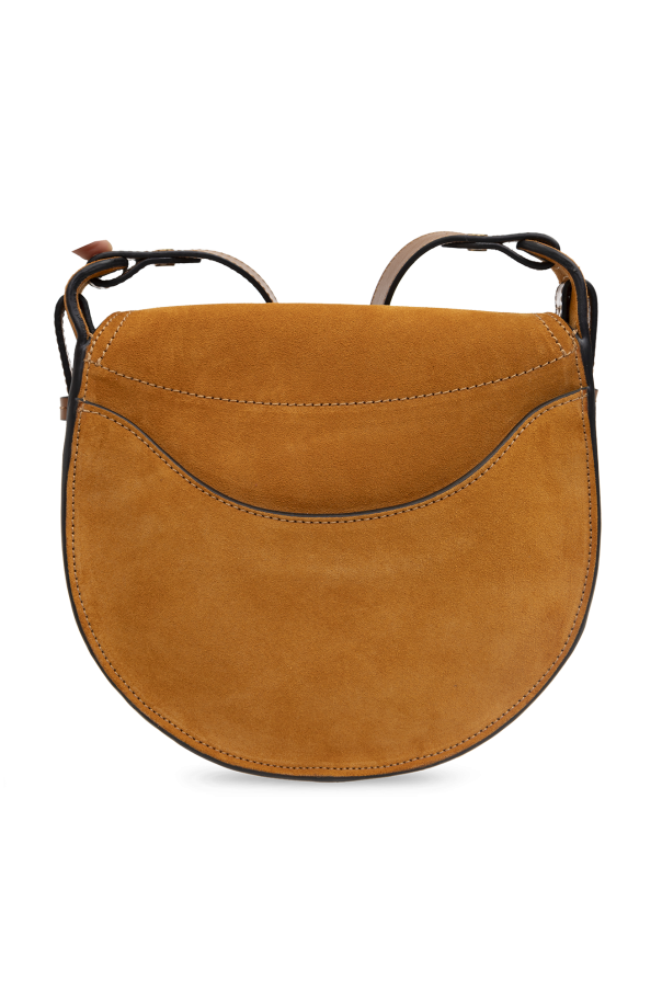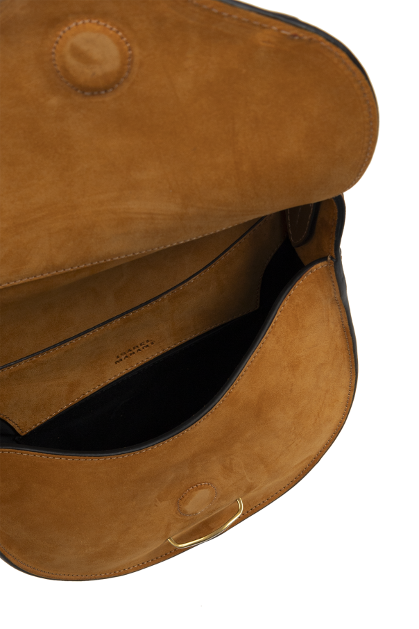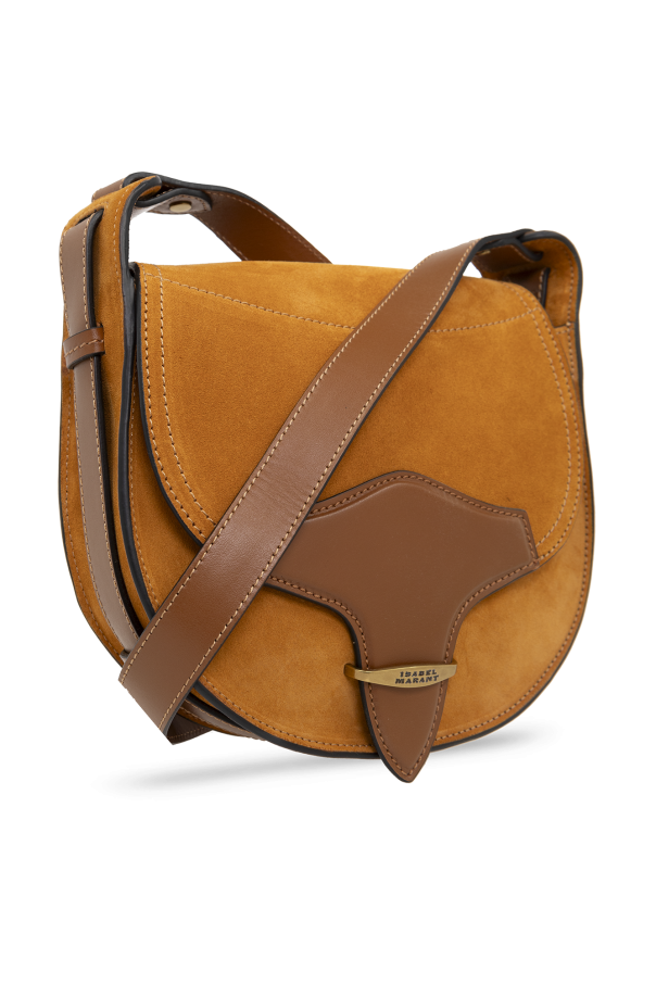 Brown ‘Botsy’ shoulder bag from Isabel Marant. Crafted from suede and calf leather, this design secures with a magnetic snap accompanied with logo-engraved hardware and features an adjustable shoulder strap, one back slip pocket, antiqued gold-tone metal elements and one internal compartment with a slip pocket.