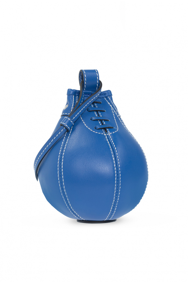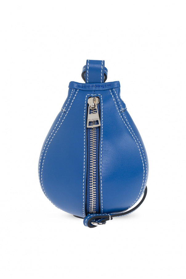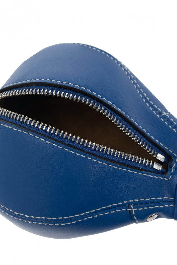 Navy blue shoulder bag 'Nano Punch' from JW Anderson. Made of cow leather. Closed with a zipper. Shoulder strap. Inside a compartment. Silver-tone metal finish.