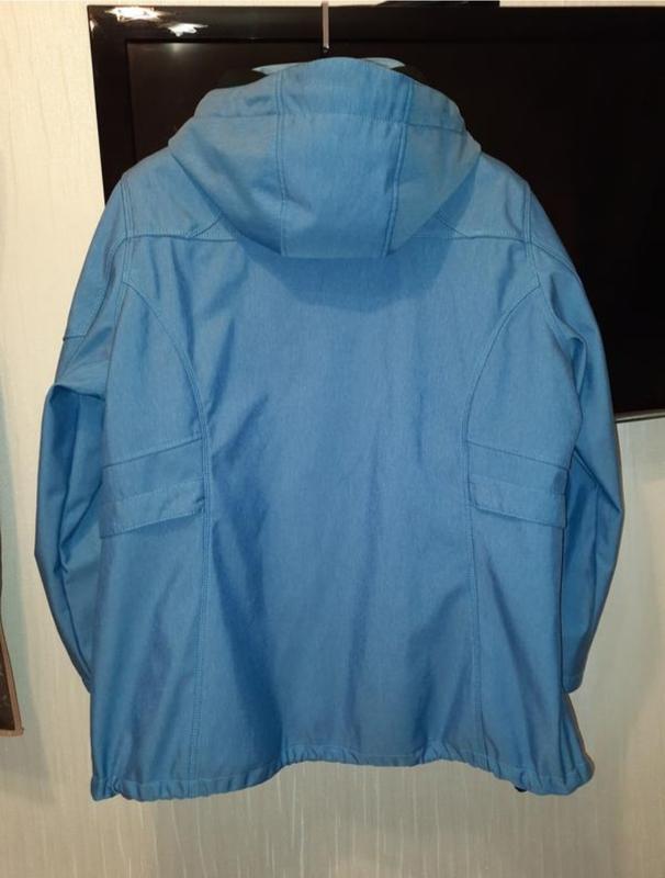 классная женская куртка демисезон, со съемным капюшоном. Вспен и рукава на тонком флисе, не парит.Размер указан 52 EU, около 58 - 60 Укр. Красивый голубой цвет. Талия регулируется кнопками, низ регулируется резинкой.. Стан идеален, без следов ношения.
