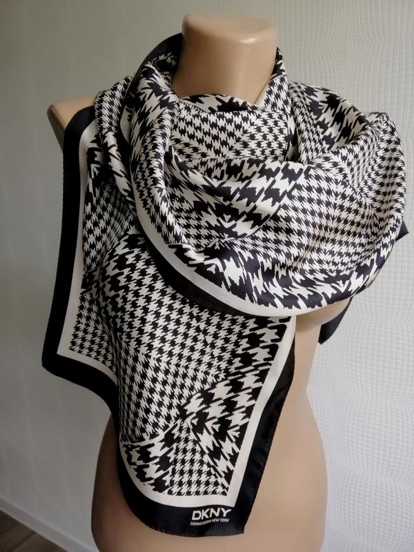 Шелковый платок DKNY в идеальном состоянии, есть одна затяечка в одну нить, если не присматрваться -не видно (смотрите последние фото). Размер 162/34 см. Бирочки нет. Оплата: 100% оплата на карту Приват банка.Доставка: по всей Украине за счёт покупателя Новой почтой.Возврат: не предусмотрен!