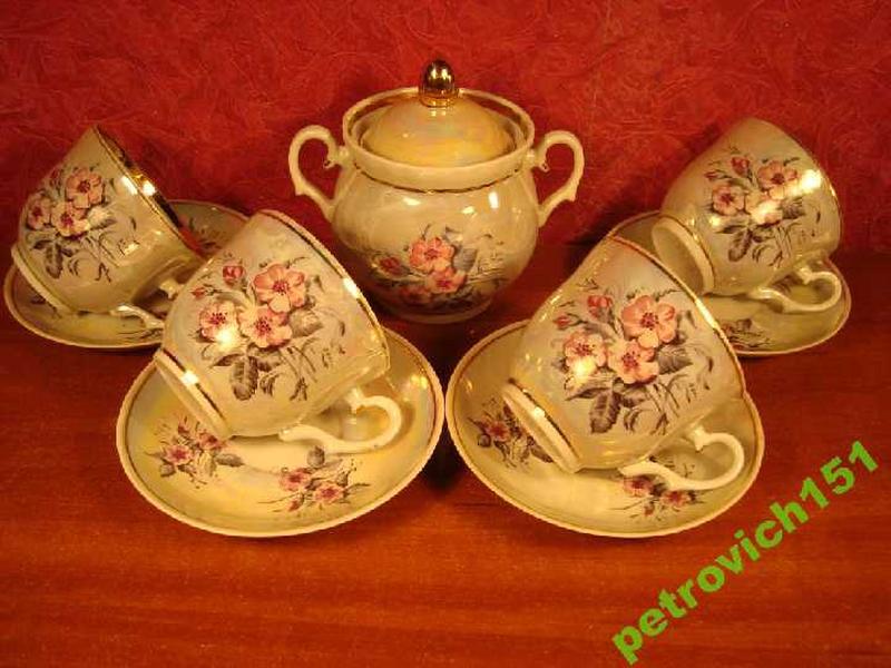 Матеріал:Фарфор ,Склад сервізу:Блюдце , Цукорниця , Чашки ,Тип:Чайний , - Shipping
