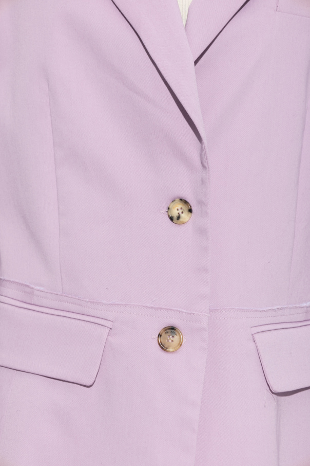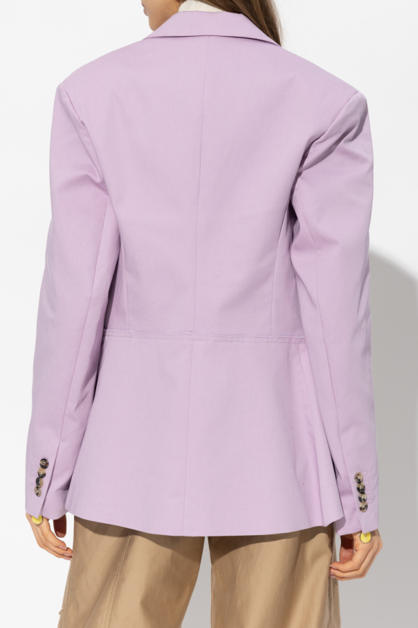 Light purple single-breasted blazer from JW Anderson. Made of cotton, this loose-fitting design features button fastenings, decorative stitching details, raw cut edges, slip pocket, two flap pockets and long sleeves with buttoned cuffs.