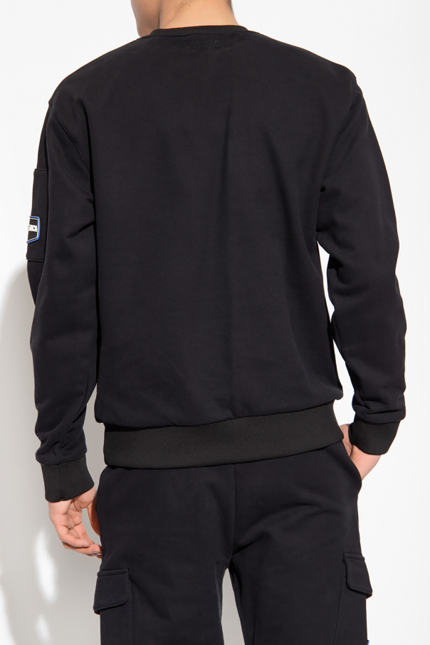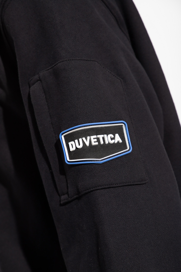 Black ‘Cori’ crewneck sweatshirt from Duvetica. Made of cotton, this style features a zipped pocket accompanied with a rubber logo patch on the sleeve, tactile branding at the back and ribbed trims on the bottom hem and cuffs.