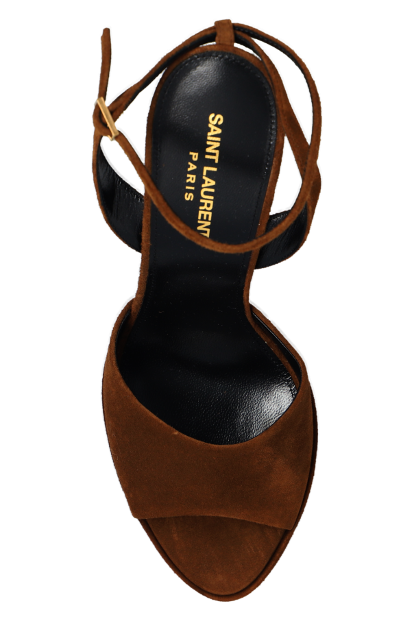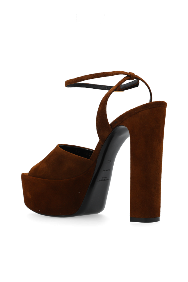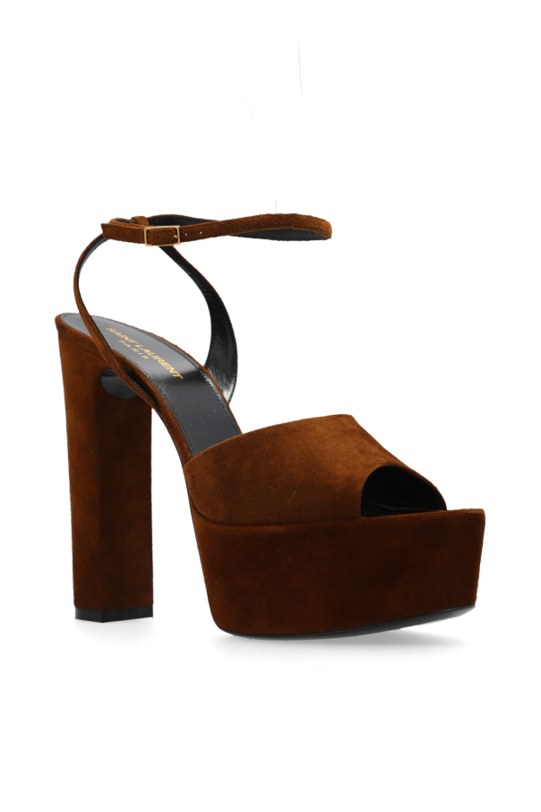 Brown 'Jodie' platform sandals from Saint Laurent. Made from suede, this model sits on a black leather sole and features an ankle strap with a buckle.