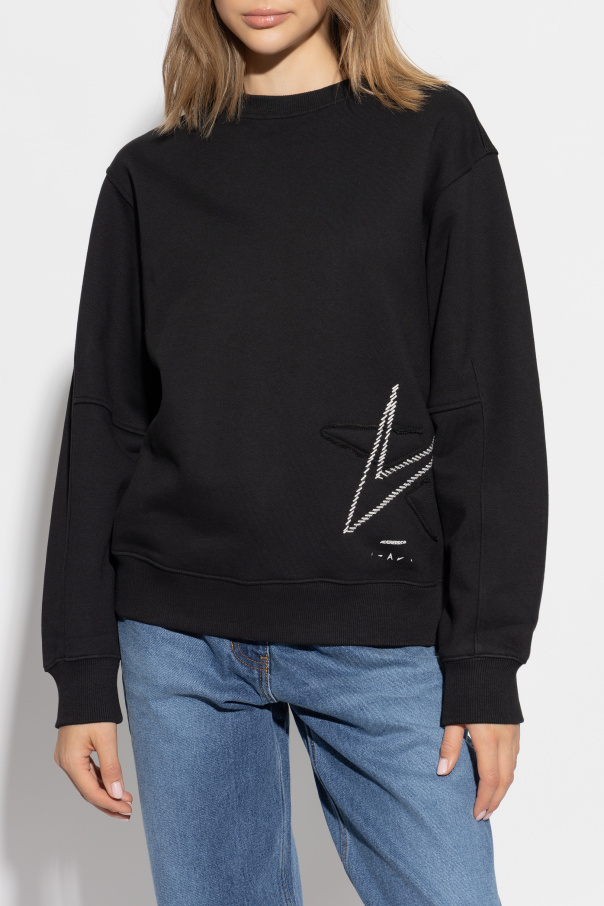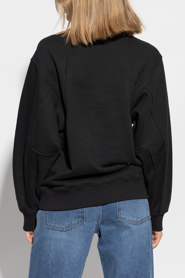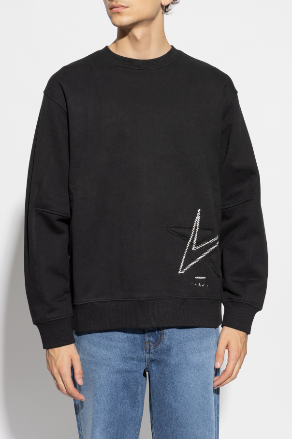 Introducing the exquisite Unisex Logo Sweatshirt by the esteemed fashion house Ader Error. This sophisticated piece exemplifies the brand's commitment to combining minimalism with contemporary aesthetics. Crafted from luxurious cotton, this crewneck sweatshirt features a timeless design with long sleeves finished with cuffs. The dominant black hue is elegantly contrasted by a distinctive white-stitched "A" pattern, encircled by triangular elements, positioned on the lower left front. Meticulously detailed, the sweatshirt showcases prominent stitching and sharply defined edges, adding a unique character to its minimalist silhouette. Below the "A" pattern, the designer's logo "ADERERROR" and additional subtle inscriptions and symbols are tastefully displayed. This versatile piece is modeled by both men and women, reinforcing its unisex appeal. The back remains simple and unadorned, maintaining the garment's sleek and modern design. Why Choose This Product? Exclusive design by renowned brand Ader Error High-quality cotton for unparalleled comfort Distinctive and unique stitched pattern Versatile unisex style suitable for any wardrobe Perfect blend of minimalism and modernity