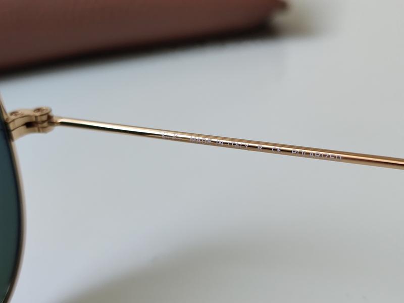Стильные и всегда актуальные Ray Ban Aviator в золотой металлической оправе и редкими поляризированными зелеными линзами.