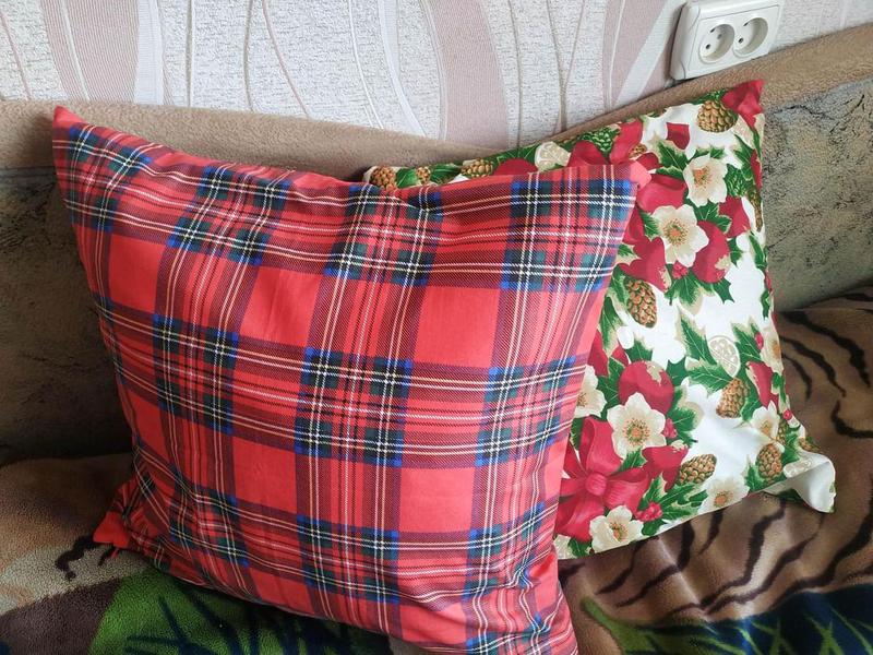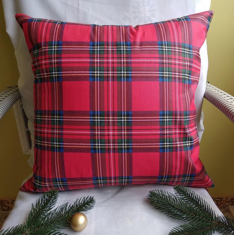 Новорічна наволочка 45*45 в клітинку шотландка з тканини бавовна для декора ліжка або можна спати на цих наволочках, бо вони з натуральної бавовни