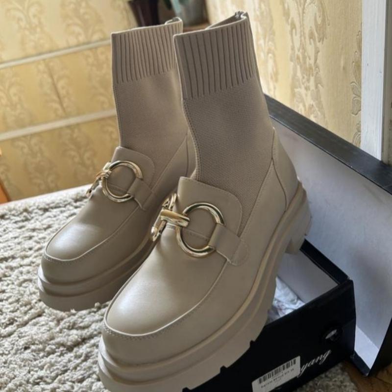 Красивые ботинки на низком ходу, толстая подошва, на резинке. Идеальное состояние. Очень милые и стильные.