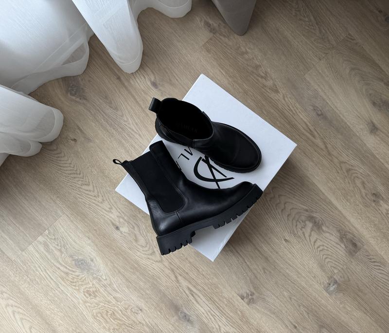 Из натуральной кожи. Осеннее/весеннее. Без застежекКупленные в прошлом сезоне, в пользовании были считанные раза (видимо состояние подошвы и голенища на фото).