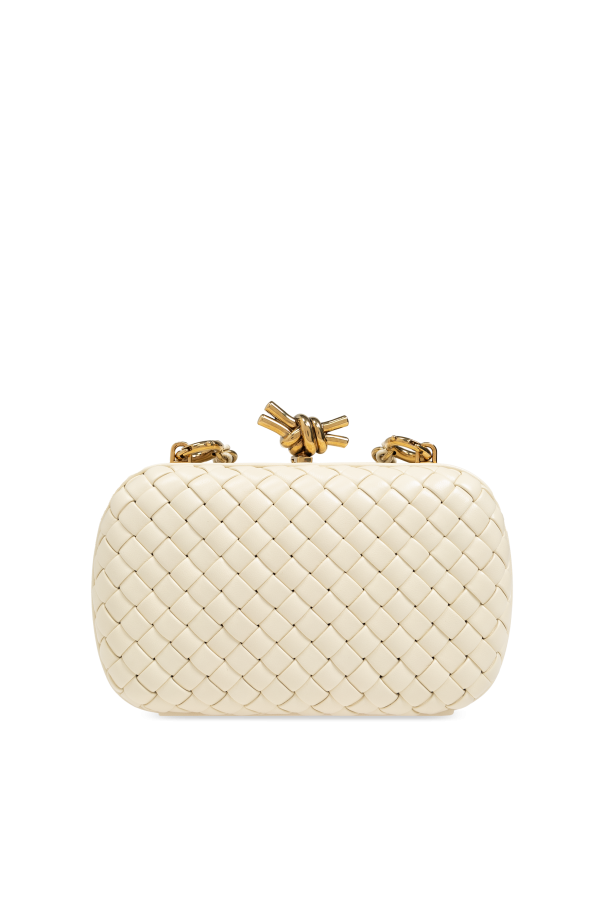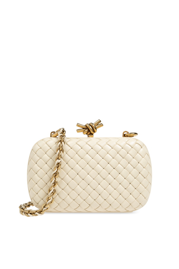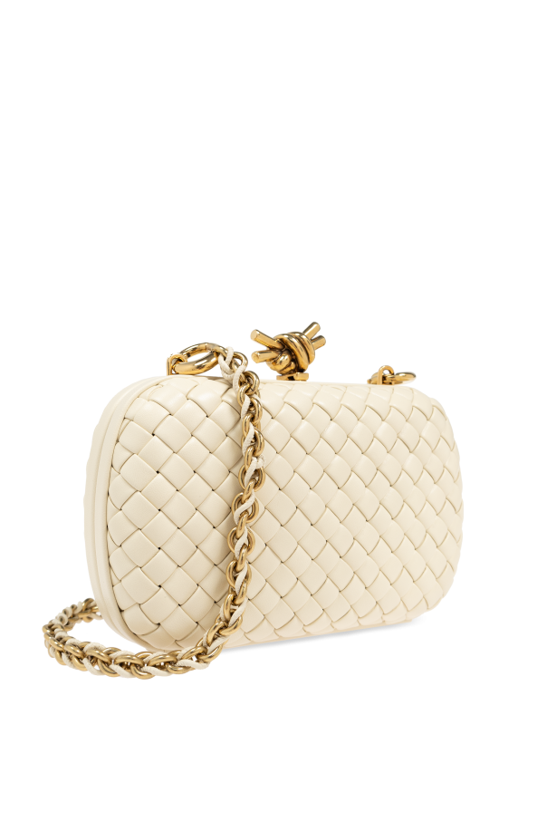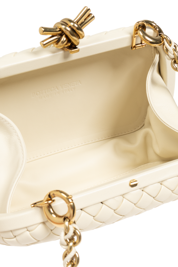 Introducing the epitome of refined luxury, the Knot Shoulder Bag by the illustrious designer Bottega Veneta. This exclusive accessory exudes sophistication through its distinctive design and exceptional craftsmanship. The bag features a rectangular, rounded silhouette that seamlessly merges elegance with modernity. Its standout woven pattern, crafted from high-quality lambskin leather, is a signature of the brand, underscoring its luxurious essence. Encased in sumptuous cream leather, this masterpiece boasts an interior lined with matching leather, ensuring a cohesive and elegant look throughout. The bag's top is adorned with a gold knot clasp, adding a unique touch of sophistication and originality. The long strap, a harmonious blend of gold chain and leather, allows for comfortable shoulder wear, making it both practical and stylish. Inside, the embossed logo "BOTTEGA VENETA MADE IN ITALY" serves as a testament to its exclusive heritage and impeccable craftsmanship. Why You Should Buy This Product? Exclusive and sophisticated design High-quality lambskin leather Unique woven pattern and gold knot clasp Comfortable and stylish gold chain and leather strap Embossed logo highlighting its authenticity