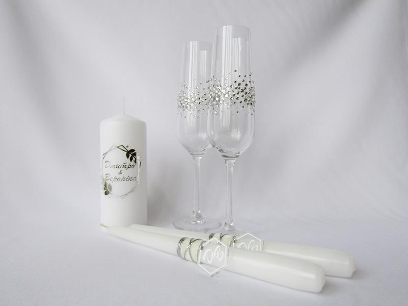 Свечи Bispol.Свадебные бокалы для молодоженов инкрустированы стеклянными стразами Crystal с покрытием Preciosa. Надежное крепление страз. Не боится воды, горячего.