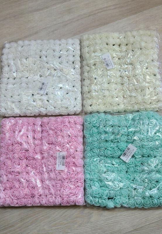 Трояндочки з фоамірану діаметр 2 см. В наявності: молочний, білий, рожевий 3 відтінки, помаранчевий, бірюзовий, фіолетовий. 1 троянда – 0,35 грн. В упаковці 144 шт. Можна поштучно.