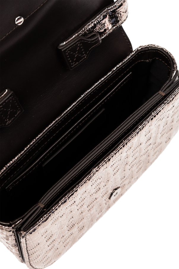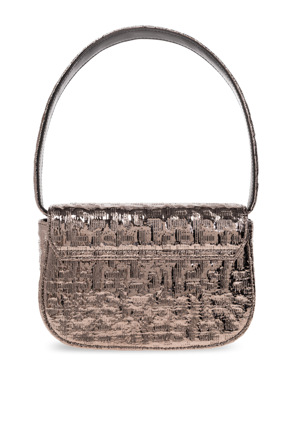Silver-tone ‘1DR’ shoulder bag from Diesel. Made of textured fabric with a metallic finish and cow leather trims, this model fastens with a magnetic snap and is decorated with a metal logo detail. It also has a half-round handle, detachable and adjustable shoulder strap, silver-tone metal hardware as well as two internal compartments with two slip pockets.
