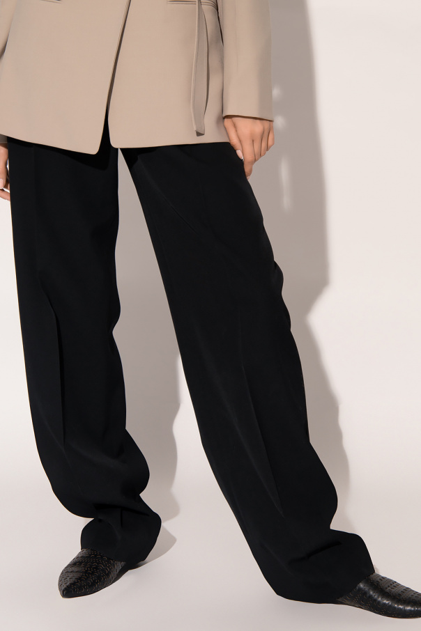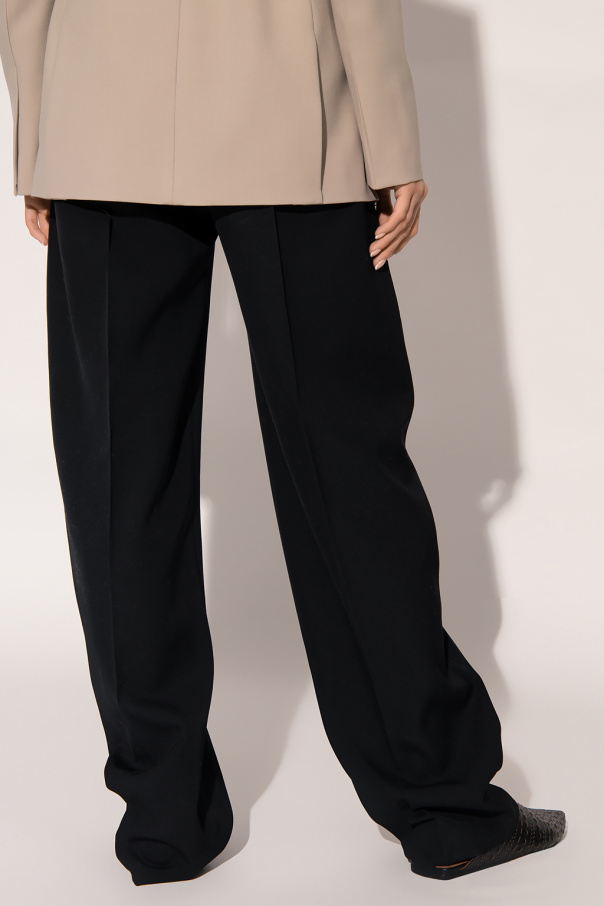 Black high-waisted pleat-front trousers from Alaia. Fastened with a zip, this pair falls down with wide straight legs and is complete with two slip pockets.
