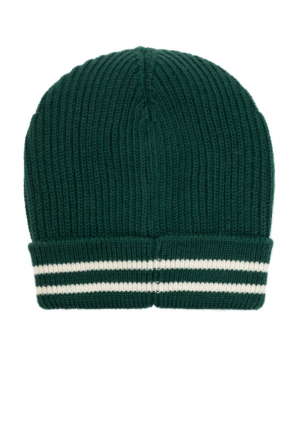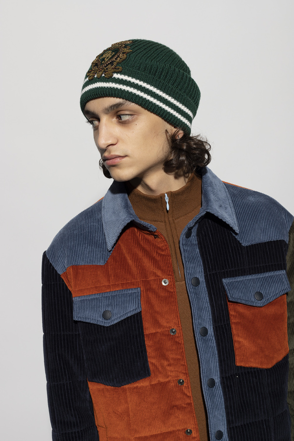 Green ribbed hat from Dolce & Gabbana. Made of wool, this item is enriched by embroidered stripes, cream, black and green logo patch and decorative elements in gold-tone.
