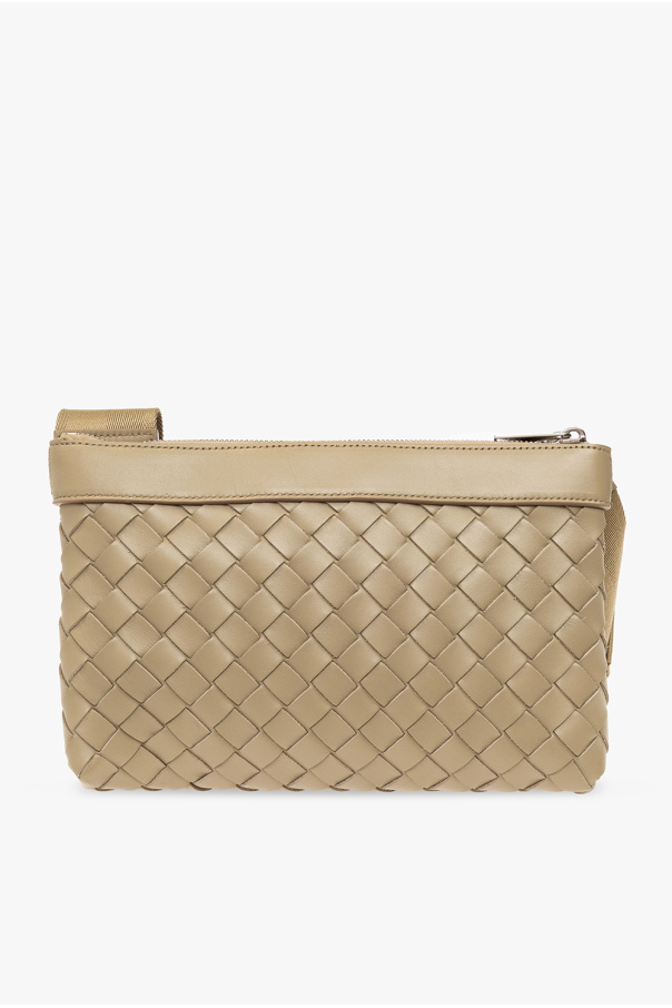 Greenish grey ‘Classic Duo’ shoulder bag from Bottega Veneta. Crafted from calf leather with the brand’s signature Intrecciato weave, this model features a zip fastening, two separate compartments with snap buttons, adjustable shoulder strap and silver-tone metal hardware.