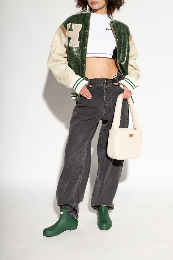 Green ‘Original Chelsea’ rain boots from Hunter. Handcrafted from natural rubber and vulcanised for superior protection, this pair has a matte finish, elastic side panels, logo print and rubber sole with Hunter Original tread pattern.