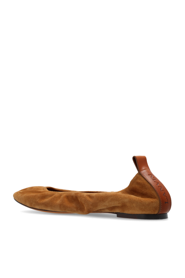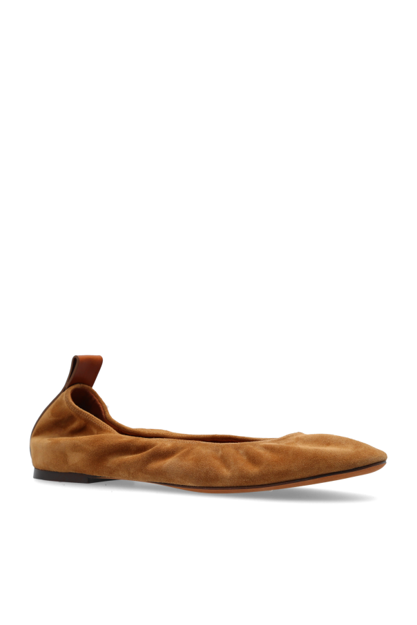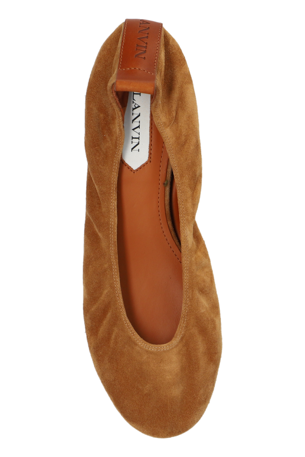 Introducing the epitome of timeless elegance and comfort, the Lanvin Suede Ballet Flats in a warm, brown hue. Crafted from premium suede, these ballet flats boast a classic, round-toe design that exudes a refined simplicity. The material's softness and smoothness speak to the high-quality suede used, ensuring not only a luxurious feel but also durability. The flats feature a flat sole, highlighting their design focus on day-to-day comfort and practical wearability. A distinguishing characteristic is the contrasting small tab at the back, likely facilitating an effortless slip-on experience, while simultaneously adding a subtle touch of sophistication. The presence of the designer's logo on this tab and the inner side of the flats signals authenticity and a mark of luxury from the renowned brand Lanvin. Why Purchase This Product? Exquisite craftsmanship from premium suede, offering both luxury and durability. Timeless design with a classic round-toe shape, ensuring versatility across various styles and occasions. Designed for comfort, with a flat sole suitable for all-day wear. Unique contrasting tab and visible designer logo, emphasizing exclusivity and high fashion lineage.
