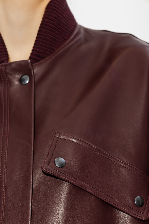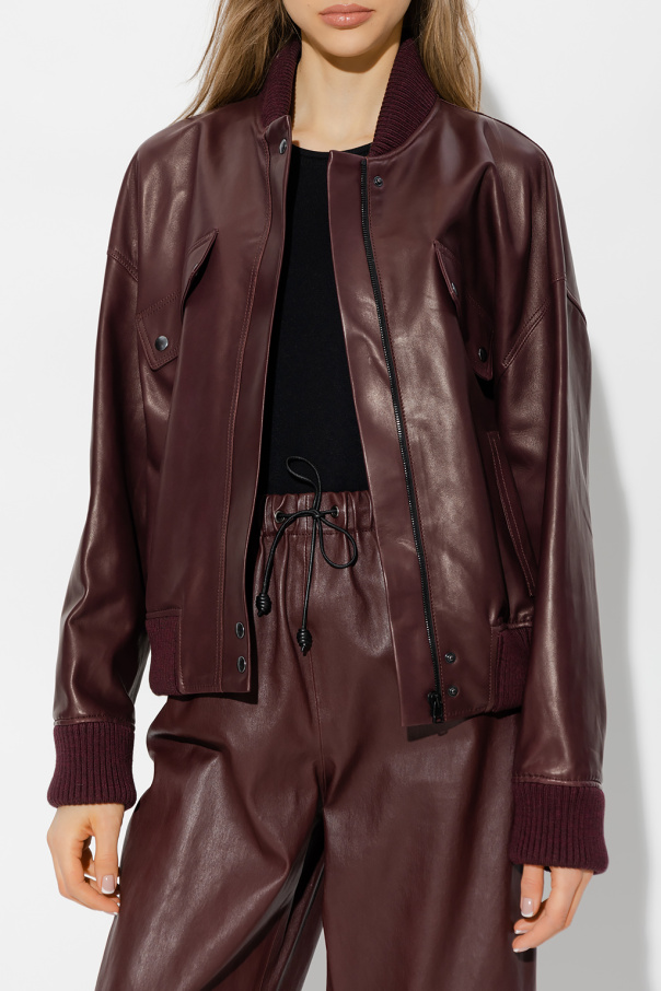 Maroon ‘Money’ jacket from Ines & Marechal. Made of lamb leather, this design features a zip and snaps, two slip pockets and two flap pockets.