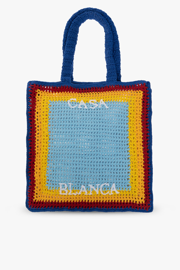 Multicoloured shopper bag from Casablanca. Crafted from a soft open weave crochet cotton fabric, this design showcases an embroidered white logo on the front, two handles and one internal compartment.