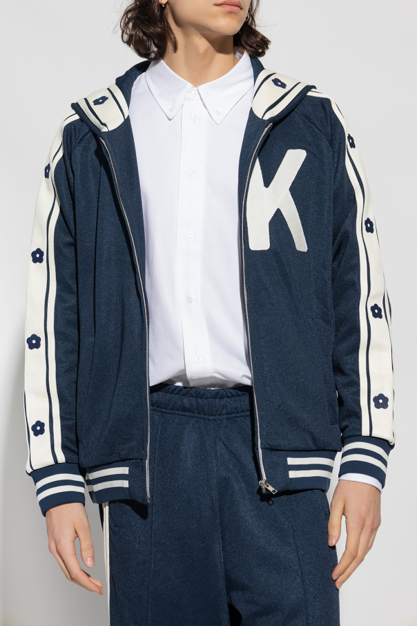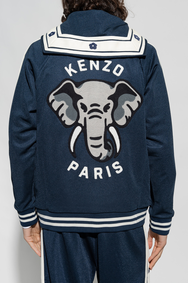 Navy and white sweatshirt from Kenzo. Fastened with a zip, this design features a logo embroidery, the brand's signature elephant motif, decorative collar and ribbed trims at the hem and cuffs.