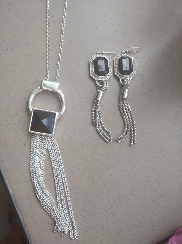 Набор длинное колье и серьги Avon, можно купить по отдельности. Колье очень красивое, бижутерия Эйвон не вытирается, гипоаллергена, прекрасно носится. Колье длиной 80 см плюс у кулона общая длина 15см . Носила пару раз, кулон очень красиво блестит, нигде не вытерт, прекрасный. Серьги длиной без застежки 9 см с застежкой общая длина 11см, ширина 2,5см. Есть нюанс на однойс серьге , там где внизу висят висюльки, кусочек откололся, в носке видно не особо, на фото показала. В остальном все прекрасно, блестят, очень красивые. Можно купить отдельно серьги, отдельно колье. Если отдельно покупать то, кулон 200 гривен, серьги 100 гривен.