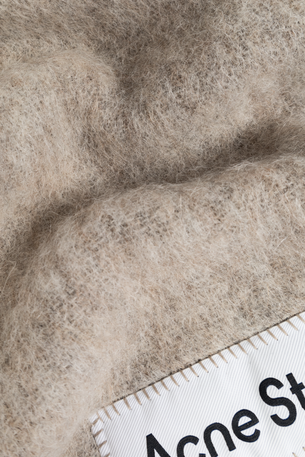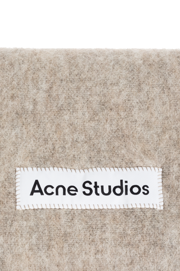 Introducing the epitome of luxury and warmth, the Acne Studios Wool Scarf in a sophisticated beige hue. Crafted from a rich blend of alpaca, wool, nylon, and mohair, this scarf promises not only supreme warmth but also unmatched durability and softness. The densely woven fabric ensures you are cocooned in comfort on the chilliest of days, making it an indispensable addition to your winter wardrobe. The scarf's rectangular shape is elegantly finished with fringes at the ends, adding a touch of classic charm to its design. A contrasting white label featuring the iconic Acne Studios logo is meticulously stitched onto the fabric, serving as a testament to its designer quality and exclusivity. Whether draped over your shoulders or styled around your neck, this scarf complements a variety of outfits, elevating them with its exquisite texture and neutral palette of beige, green, and grey. Why Purchase This Product? Exceptional Material Quality: A luxurious blend of alpaca, wool, nylon, and mohair for unparalleled warmth and softness. Designer Appeal: Features the distinguished Acne Studios logo, adding a touch of exclusivity to your accessory collection. Versatile Styling: Its neutral beige, complemented by subtle green and grey tones, makes it perfect for various fashion ensembles. Timeless Design: Classic rectangular shape with fringes and dense weave offers both elegance and practicality.