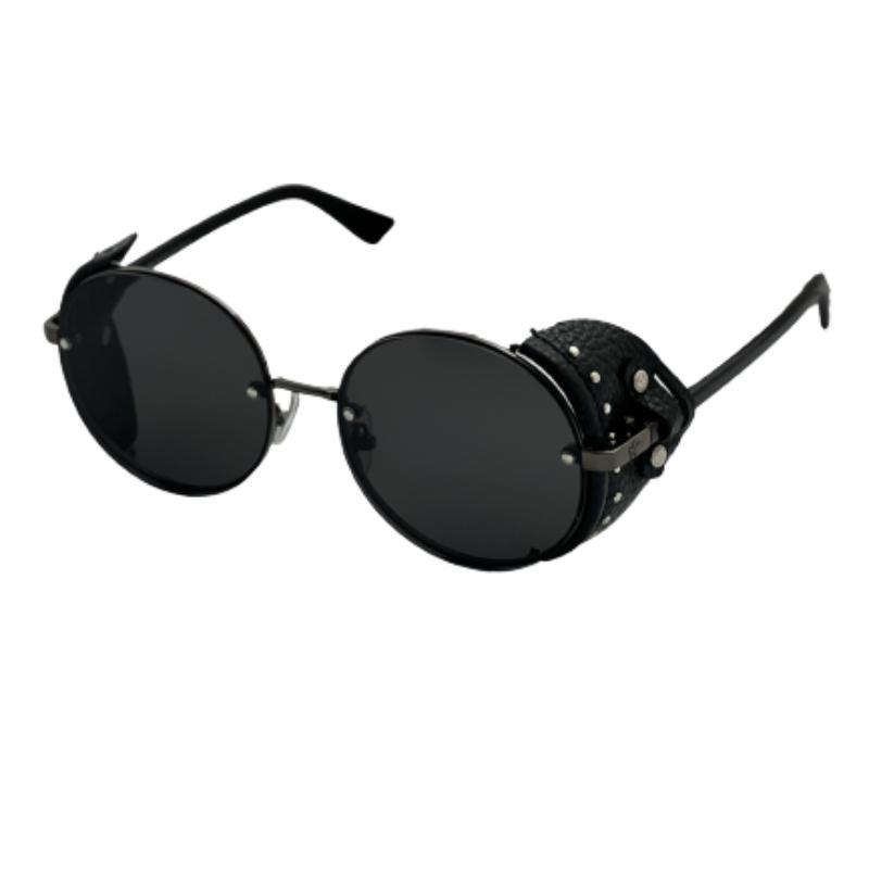 Солнцезащитные очки унисекс. Универсальный размер. Подойдут на средние и +/- лица. Линзы с поляризацией. Модель имеет тонкую металлическую оправу, дополненную по бокам съемными шорами из эко-кожи. Пластиковые дужки