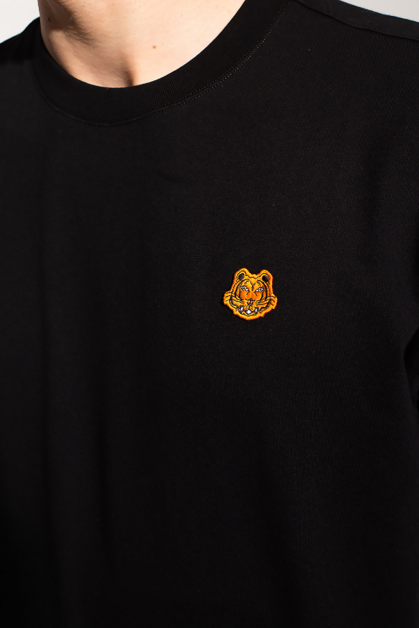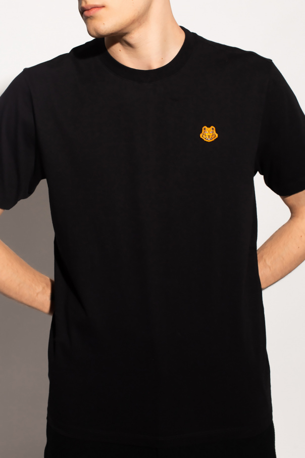 Black crewneck T-shirt from Kenzo. Made of cotton, this garment is decorated with an orange patch with the label’s signature tiger head motif.