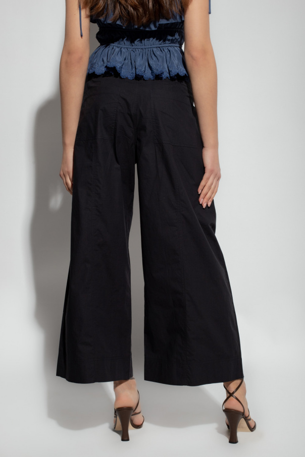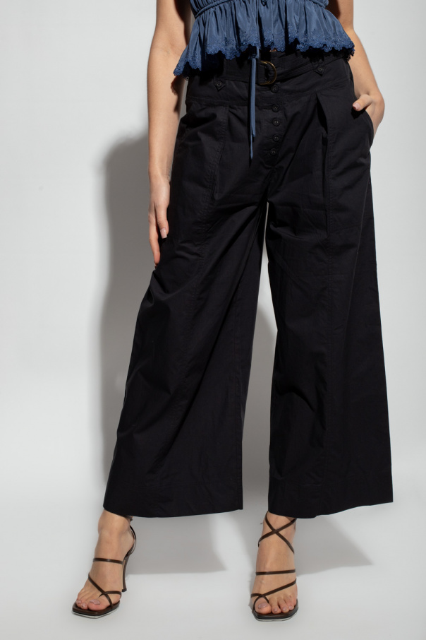 Black ‘Phoebe’ trousers from Ulla Johnson. Crafted from the brand's signature cotton poplin with a high-waisted silhouette, this pair features button fastenings, a belt with an antiqued gold-tone buckle, four slip pockets and wide legs.