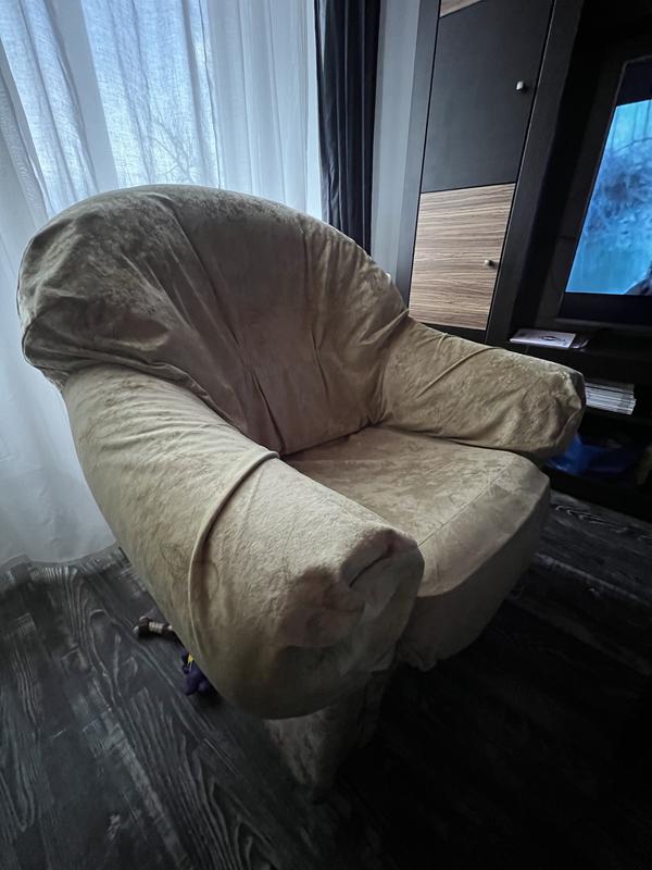 диван и два кресла, сверху чехлы