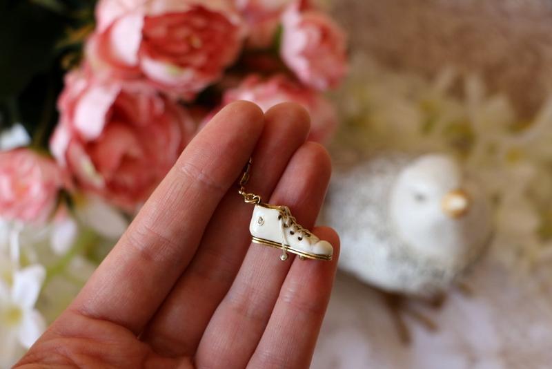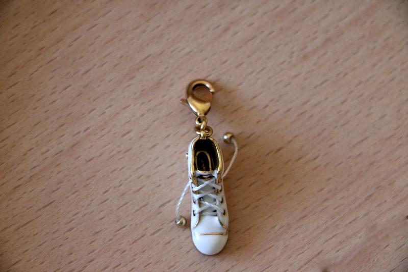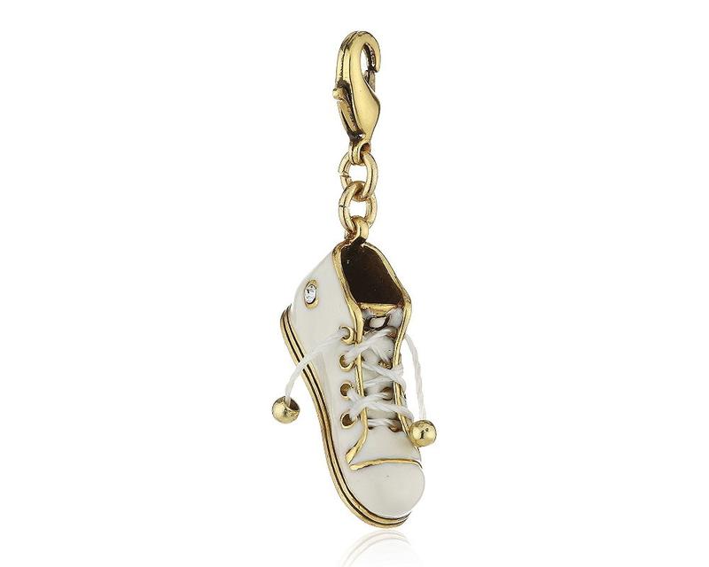 Подвеска шарм брелок "Кед" из серии Charms, из ювелирного сплава c напылением золота, кристаллом Сваровски и белой эмалью.