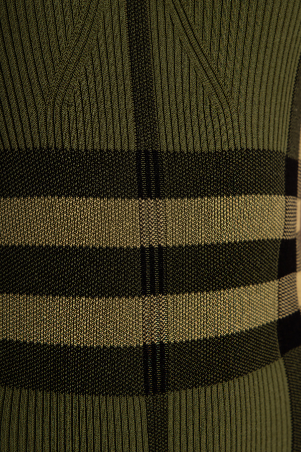 Green and black slip bodysuit from Burberry. Crafted from a silk and cotton blend with an all-over check pattern, this style features snap closures on the bottom.