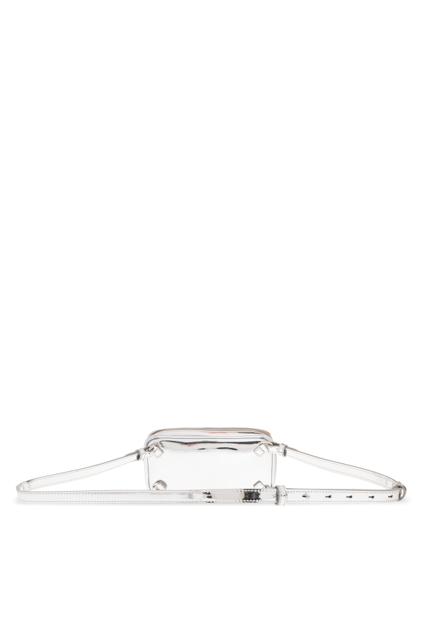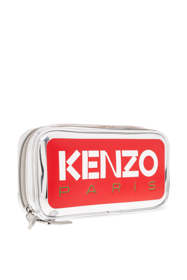 Silver-tone shoulder bag from Kenzo. Crafted from faux leather, this model features a two-way zip, red print with a logo in white and green, detachable and adjustable shoulder strap, silver-tone metal hardware and one internal compartment with black lining and one slip pocket. Can be worn as a shoulder bag or a belt bag.