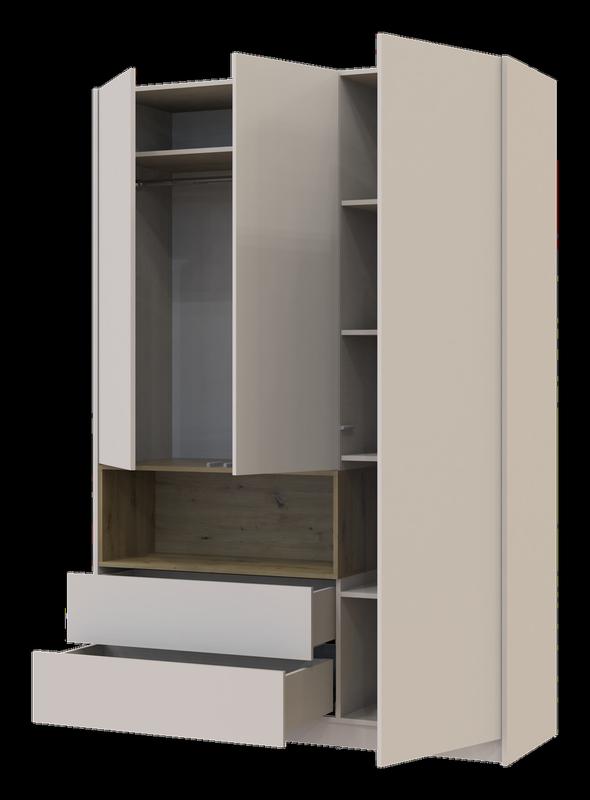 - По параметрам шкафы имеют одинаковую высоту 220 см и глубину 52 см, ширина шкафа зависит от количества распашных дверей: 2ДСП - 115.2 см 3ДСП - 150 см 4ДСП - 206 см.