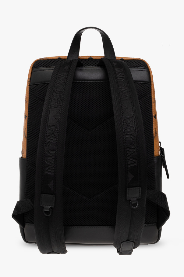 Brown and black backpack from MCM. Crafted in coated ‘Visetos’ monogrammed canvas, this design features a two-way zip fastening, leather trims, logo-engraved hardware accompanied by a zip pocket on the front, slip pockets on the sides, a top handle, adjustable shoulder straps and one internal compartment with two slip pockets.