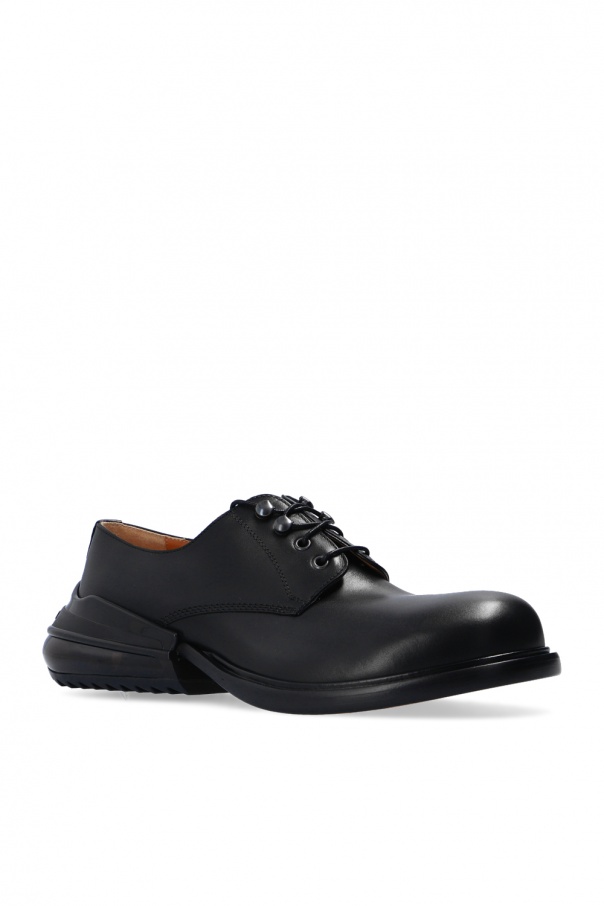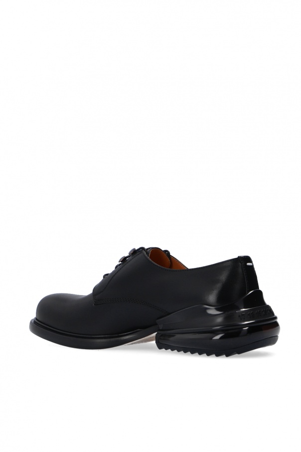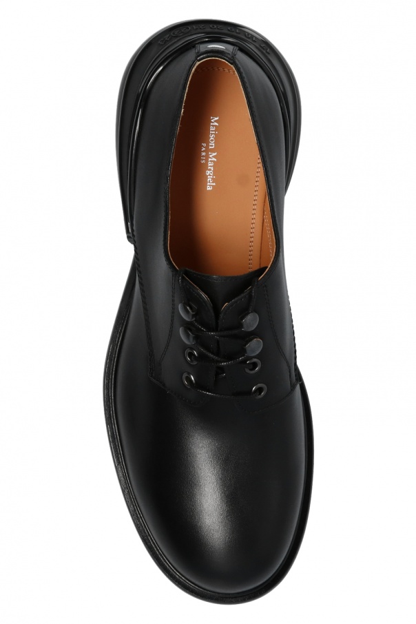 Black shoes from Maison Margiela. Crafted from leather, this lace-up design features white stitching details and a raised logo.