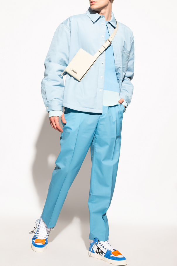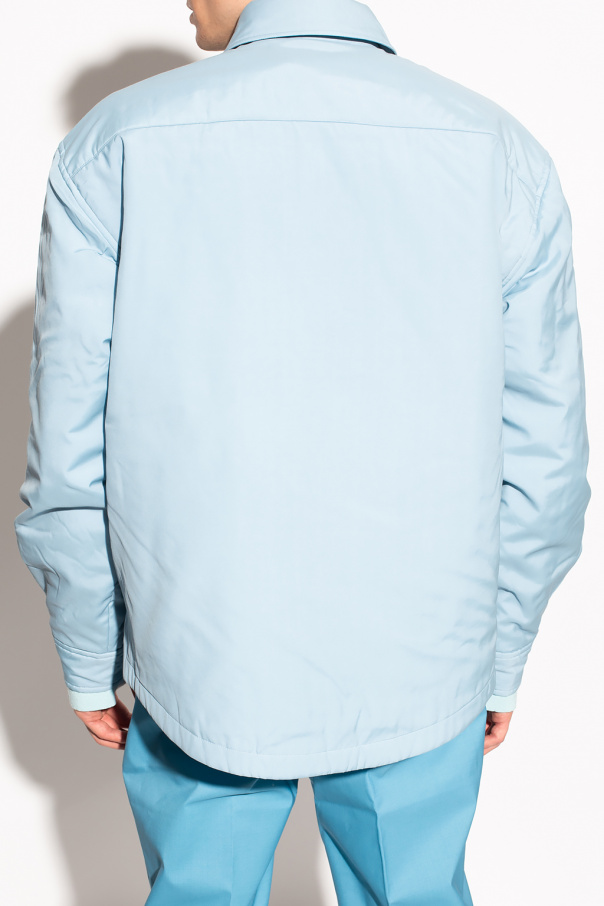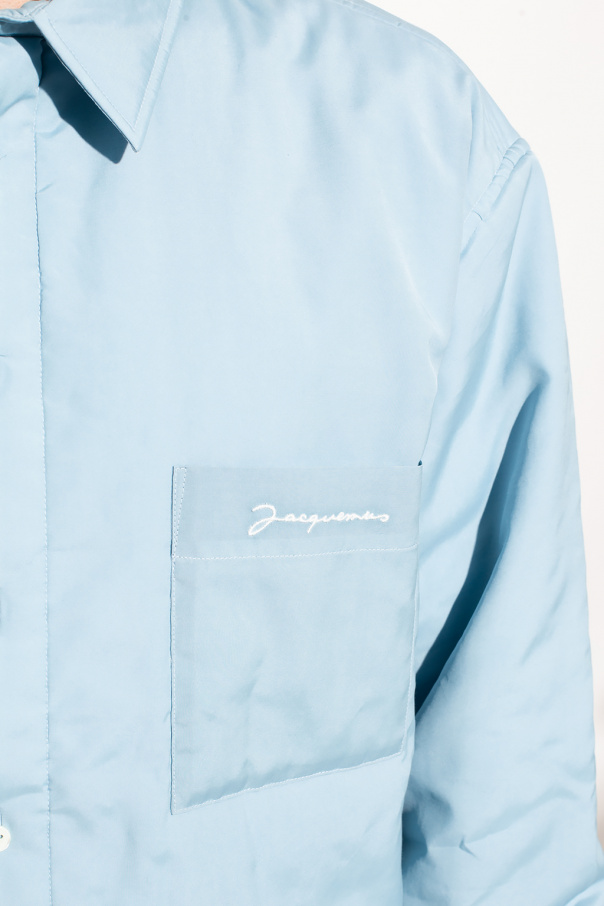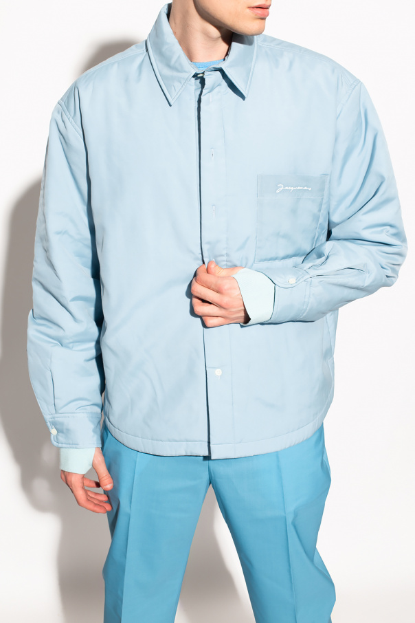 Light blue acket from Jacquemus. Fastened with buttons, this long sleeve design is enriched by a slip pocket embroidered with a white logo and side slits.