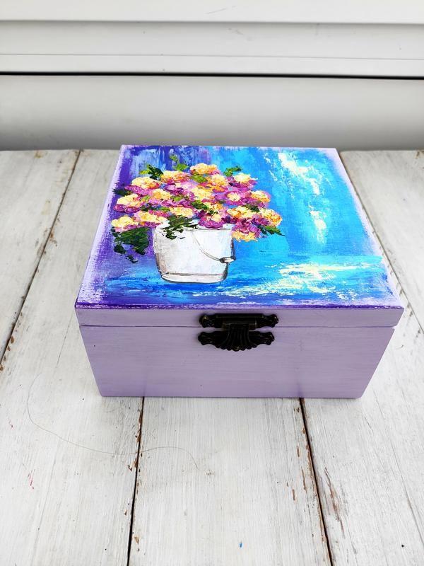 Шкатулка для украшений, деревянная, ручная роспись маслами. Авторская работа. Гармонирует с любимым интерьером, хорошо подходит к кухне и прихожей. Шкатулка может понадобиться для хранения украшений, для особых вещей. Шкатулка выполнена в авторской технике, в середине могу сделать персональную надпись или пожелания, если она предназначена для подарок. Также, могу сделать рисунок по заказу, вам потразненно лишь обратиться ко мне.