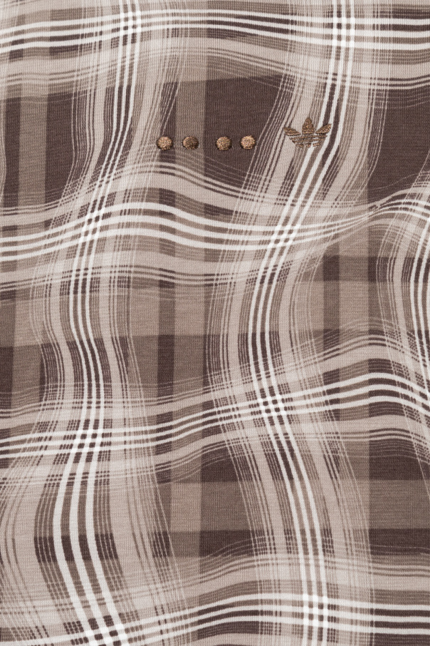 Brown and white crewneck T-shirt from ADIDAS Originals, the ‘End Plastic Waste’ line. Crafted from cotton with the BCI certificate, this style features short sleeves, an elasticated collar, logo embroidery and a wavy plaid pattern.