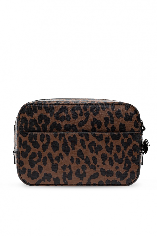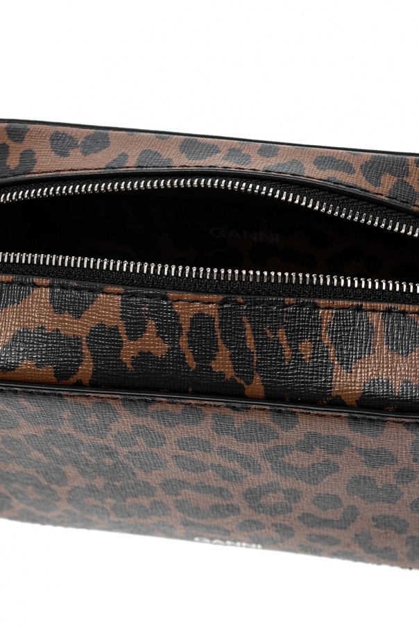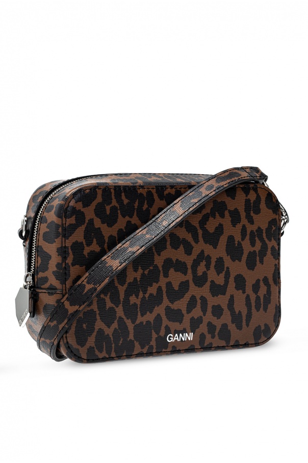 Brown and black shoulder bag from Ganni. Crafted from leather, this item comes printed with leopard motif and a silver-tone logo of the label. It also features zip fastening, an external slip pocket on the back, a detachable and adjustable shoulder strap, silver-tone metal hardware and interior with one compartment and one slip pocket.