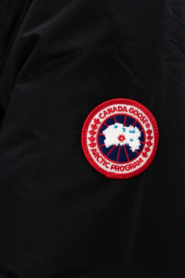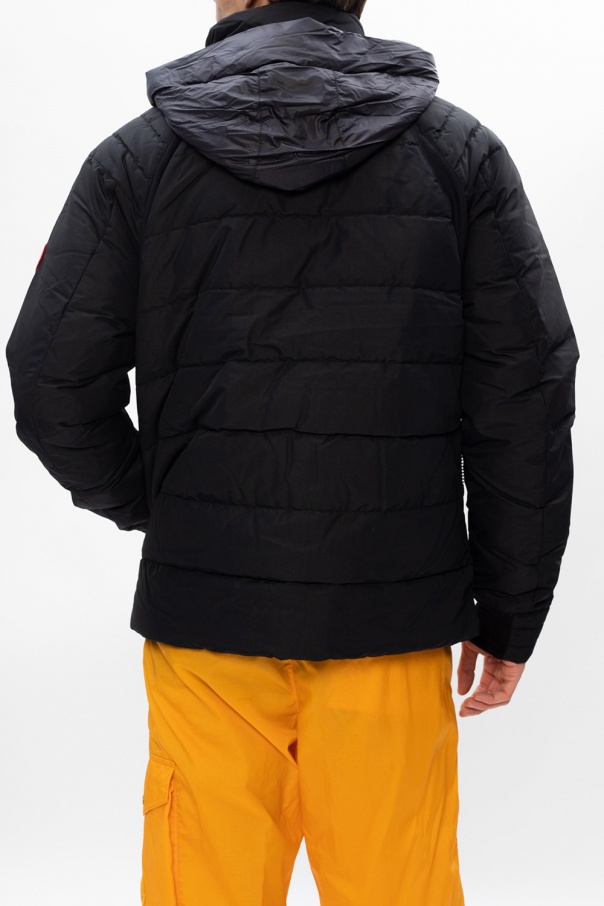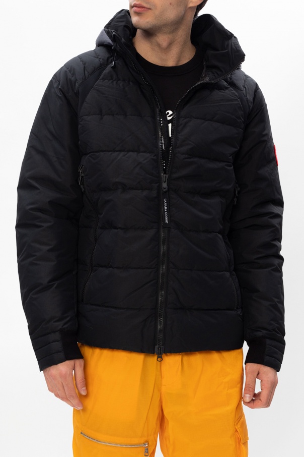 Black quilted down jacket from Canada Goose. Fastened with a two-way zip, this design features a concealed hood, two front zip pockets and a logo patch in red, white and navy. Temperature rating: 0°C / -15°C.