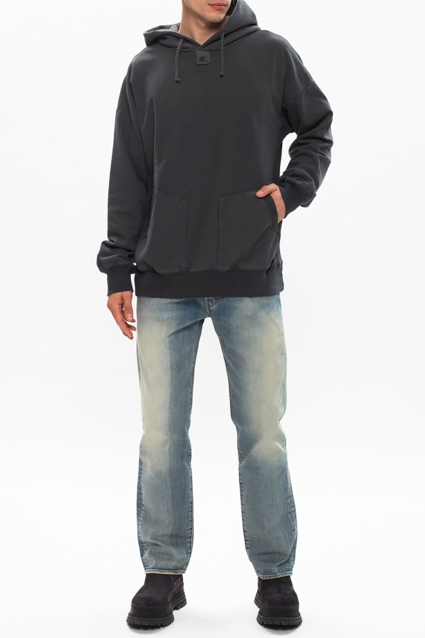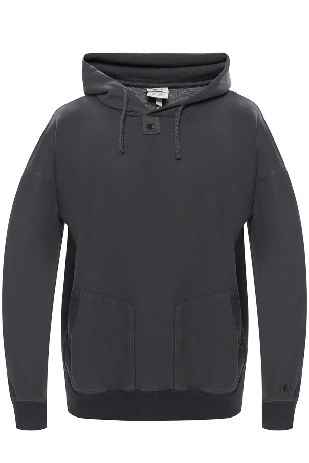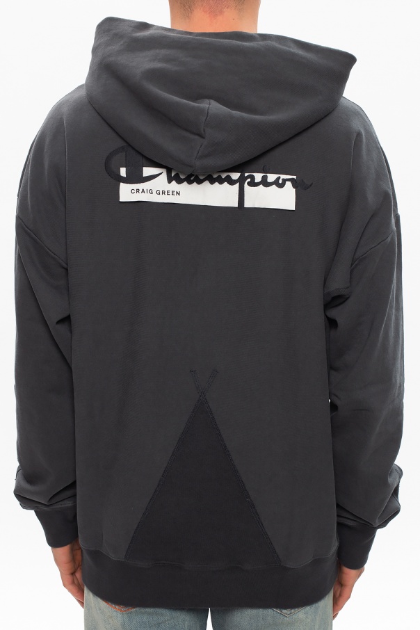 Grey sweatshirt with a drawcord-adjustable hood from Champion x Craig Green. Crafted from cotton jersey, this hoodie showcases ribbed trims, a kangaroo pocket and logo-embroidered patches on both front and back. A collection inspired by sportswear, designed for American universities in the second half of the 20th century.