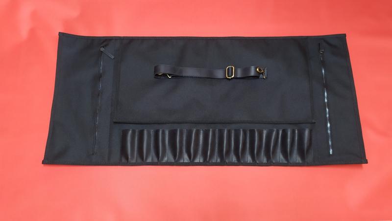 Скрутка для кухарських інструментів із тканини окфорд 600 D та натуральної шкіри.