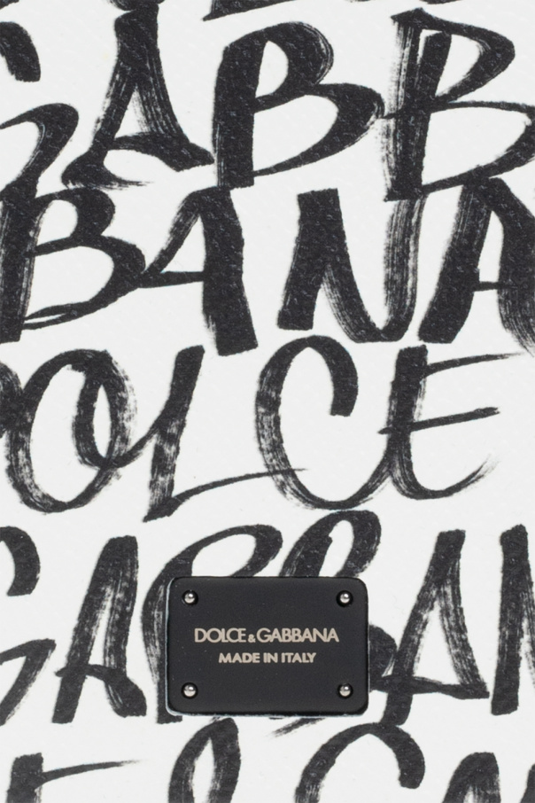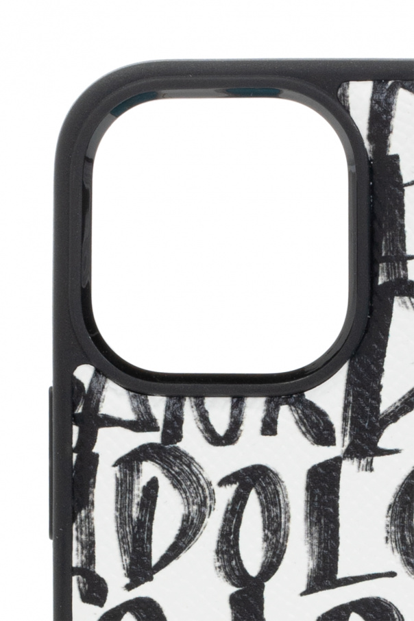 White iPhone 12 Pro Max case from Dolce & Gabbana. Crafted from calf leather, this item showcases a black logo pattern.