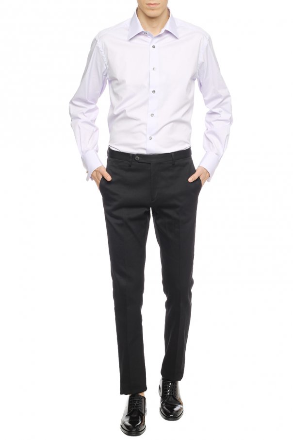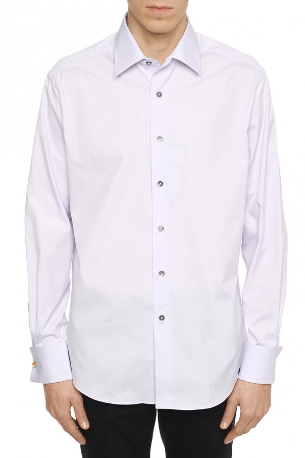 Classic light violet cotton shirt from Lanvin. Button fastening. Cuff link cuffs.